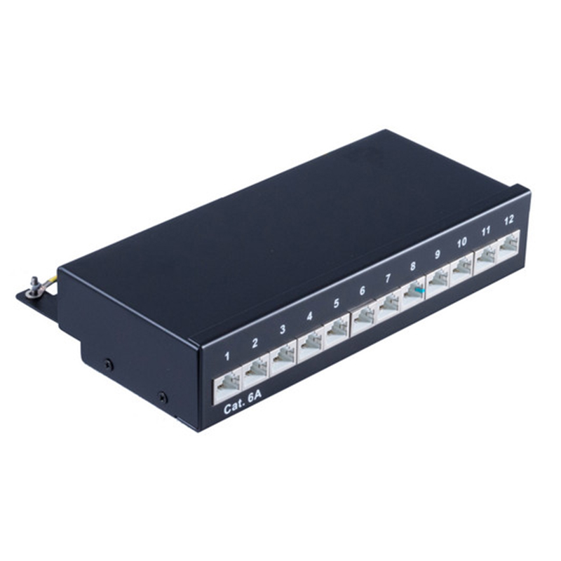 Mini Patchpanel / Patchfeld Cat.6A, geschirmt 500 MHz , Desktop Gehäuse 12-Port schwarz