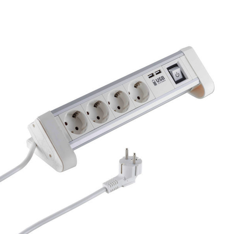 • 4-fach Tischsteckdosenleiste weiß aus Aluminium mit USB Ladefunktion 2x 1000mA